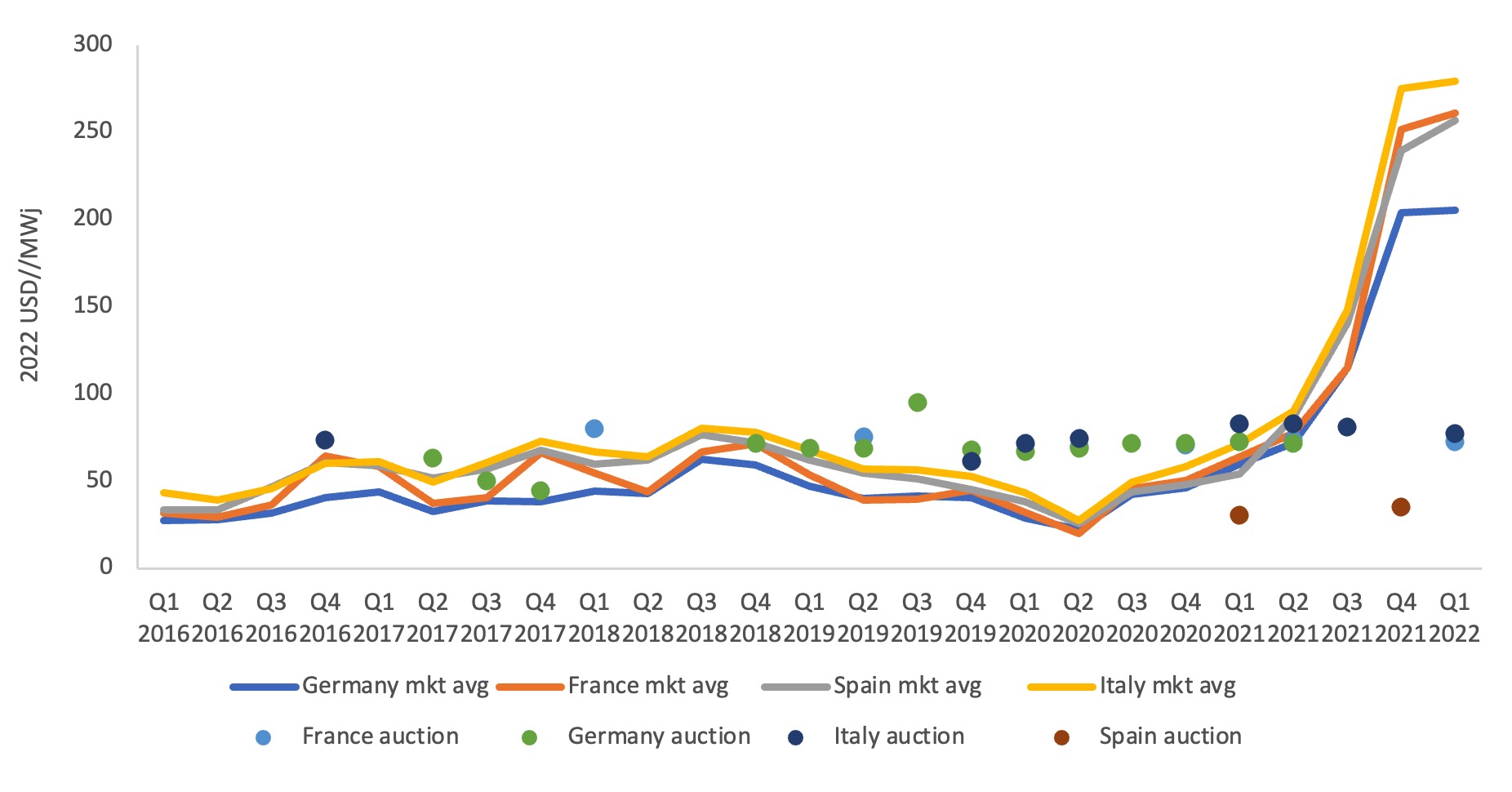 Several European countries, including Germany, the Netherlands, and Denmark, adopted a regulatory approach featuring sliding feed-in premiums (FIPs) with competitive bidding prices as the baseline. This allowed generators to sell in the spot market while subsidies provided additional revenue, leveraging the high wholesale market prices to their advantage.