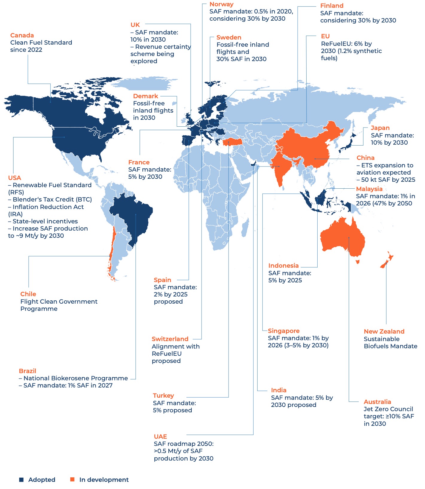 Figure 7: SAF-related Policies Under Development or Already Adopted Globally as of March 2024