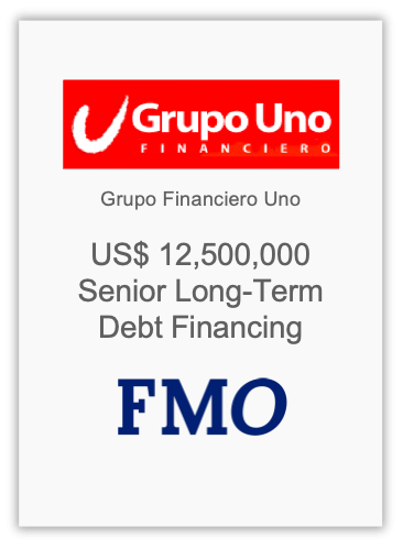 Long-term senior-debt financing was provided to Banco Uno S.A. (Panama) and Banco Uno S.A. (El Salvador) for liquidity management and funding diversification purposes by the Dutch development bank, FMO.